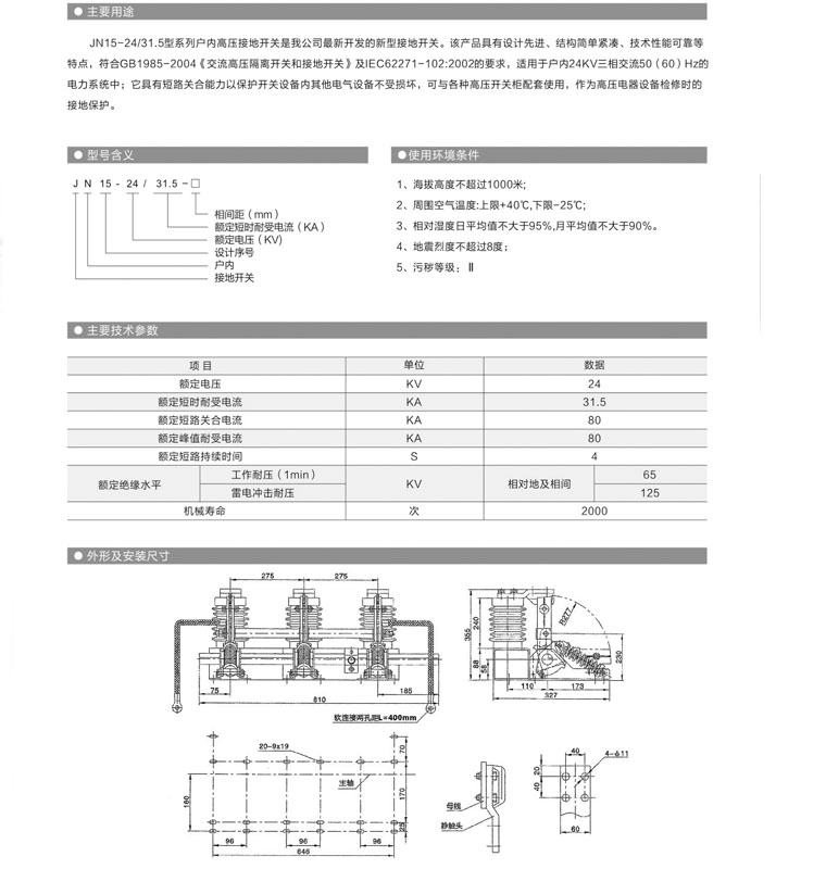 • JN15-24/31.5型戶內(nèi)高壓接地開關(guān)
