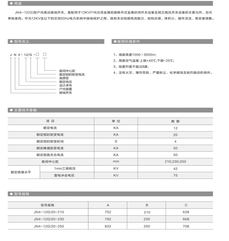 帶*項為必填項目咨詢:JN4 型戶內(nèi)高壓接地開關